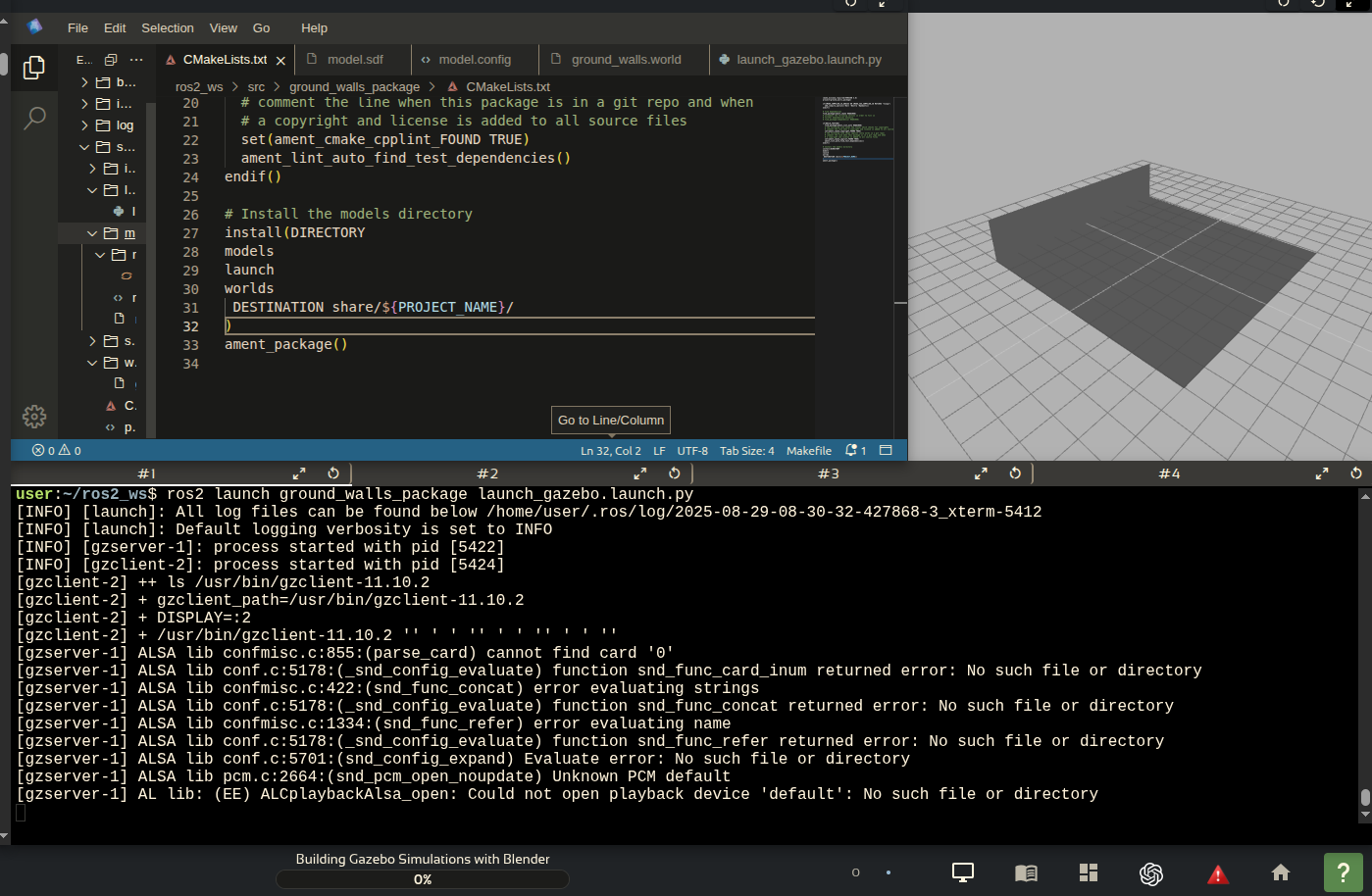 I was comping and pasting the second part of the tutorial and the plane with walls does'nt apear on the gazebo screen. We have some errors on the terminal too.
