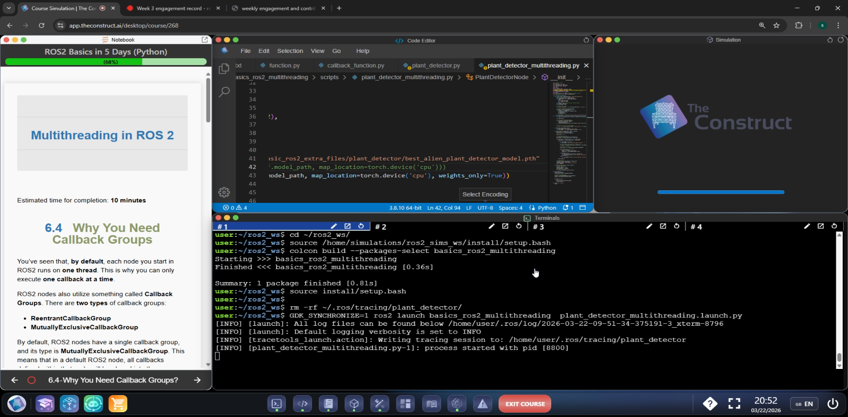 I tried many times to restart the simulator screen and even the whole TheConstruct , still it keeps on loading