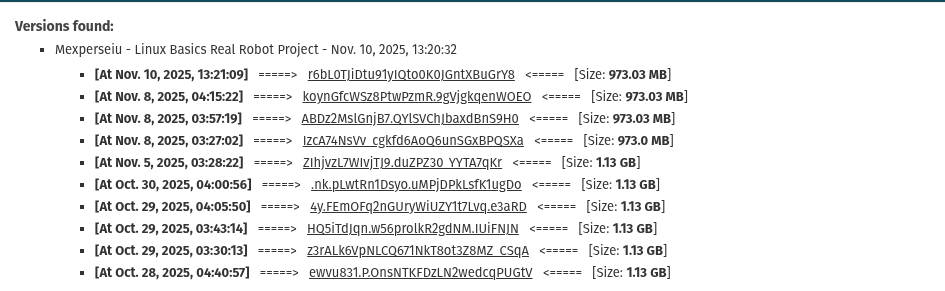 I have restored an earlier version of the rosject, the version [At Nov. 5, 2025, 03:28:22], based on the image below: