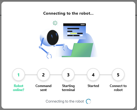 I tried to connect to the Real robot but it last more than 5 minutes in the first step “Robot online?”, and nothing happens until I get an error message telling me I can’t connect.