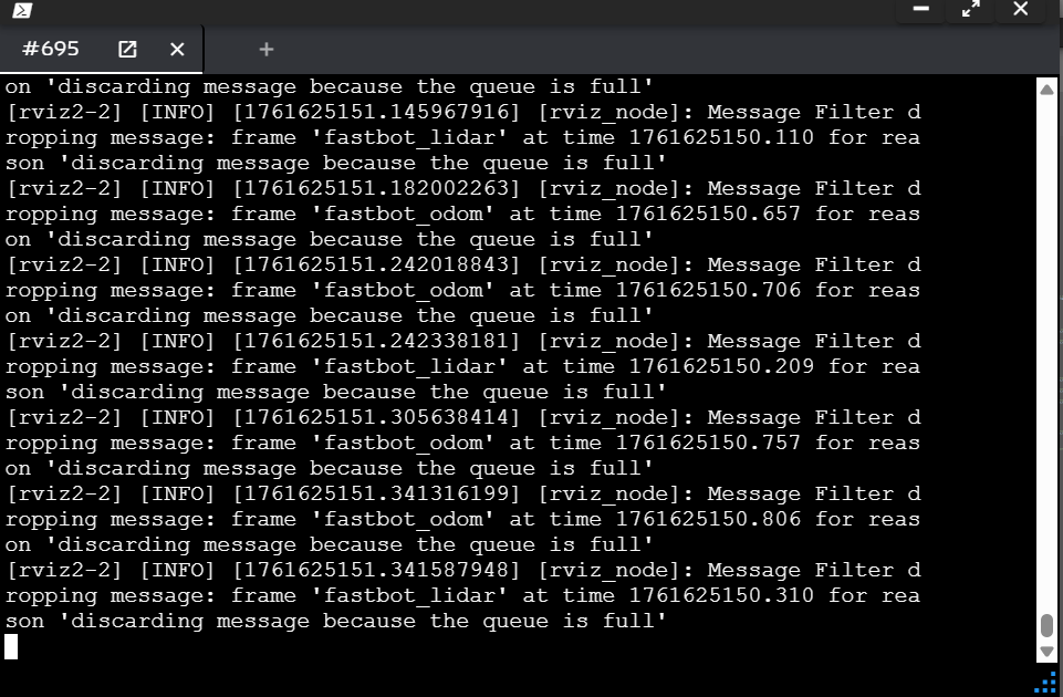 Hi @rodrigo55 , a tire seem to be disconnected and I am still getting the same error. While the robot seem to respond to joystick commands, rviz is not running properly and the robot is not executing my program.