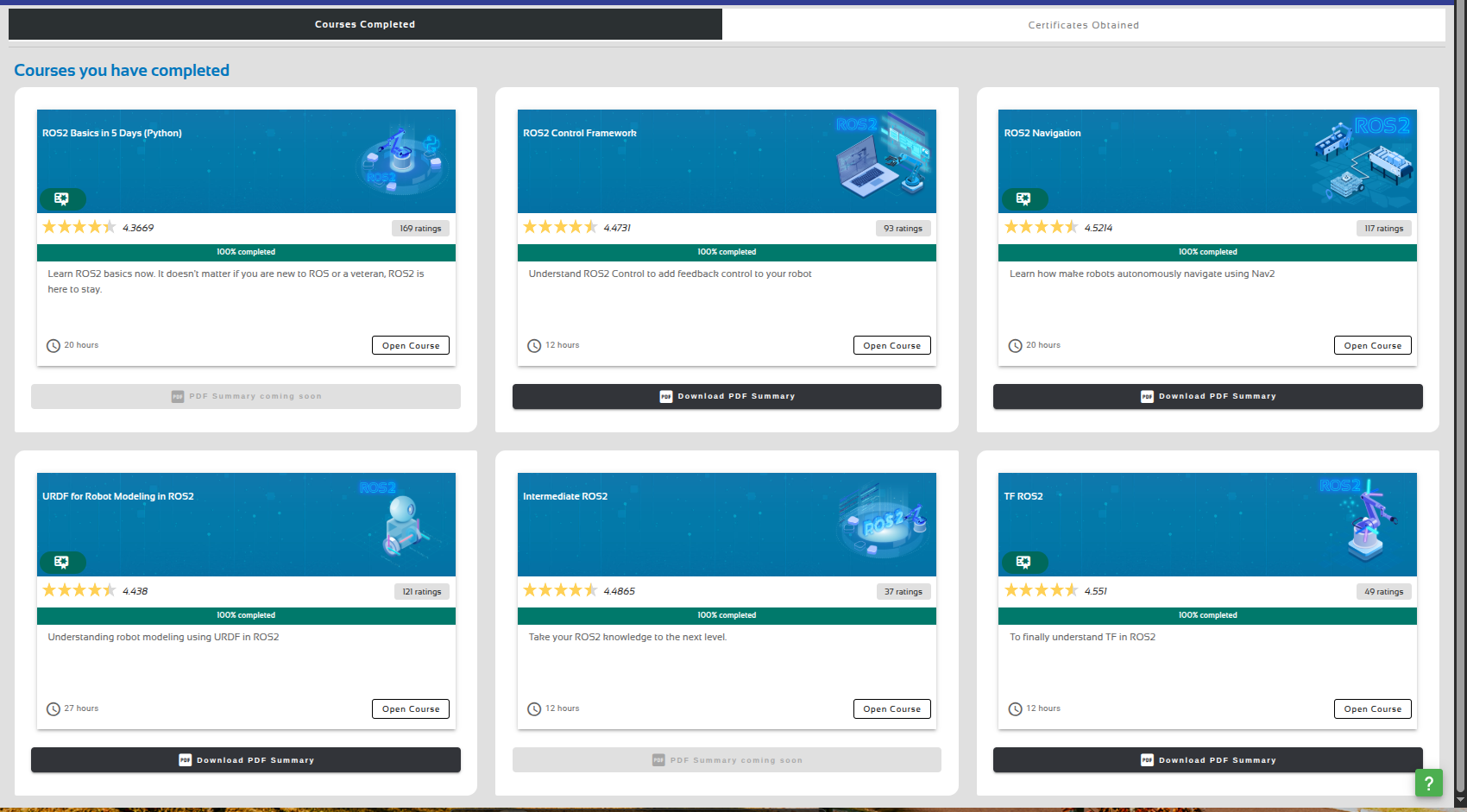 I haven’t received the certification after completed the ROS2 learning path, even through all the courses are completed
