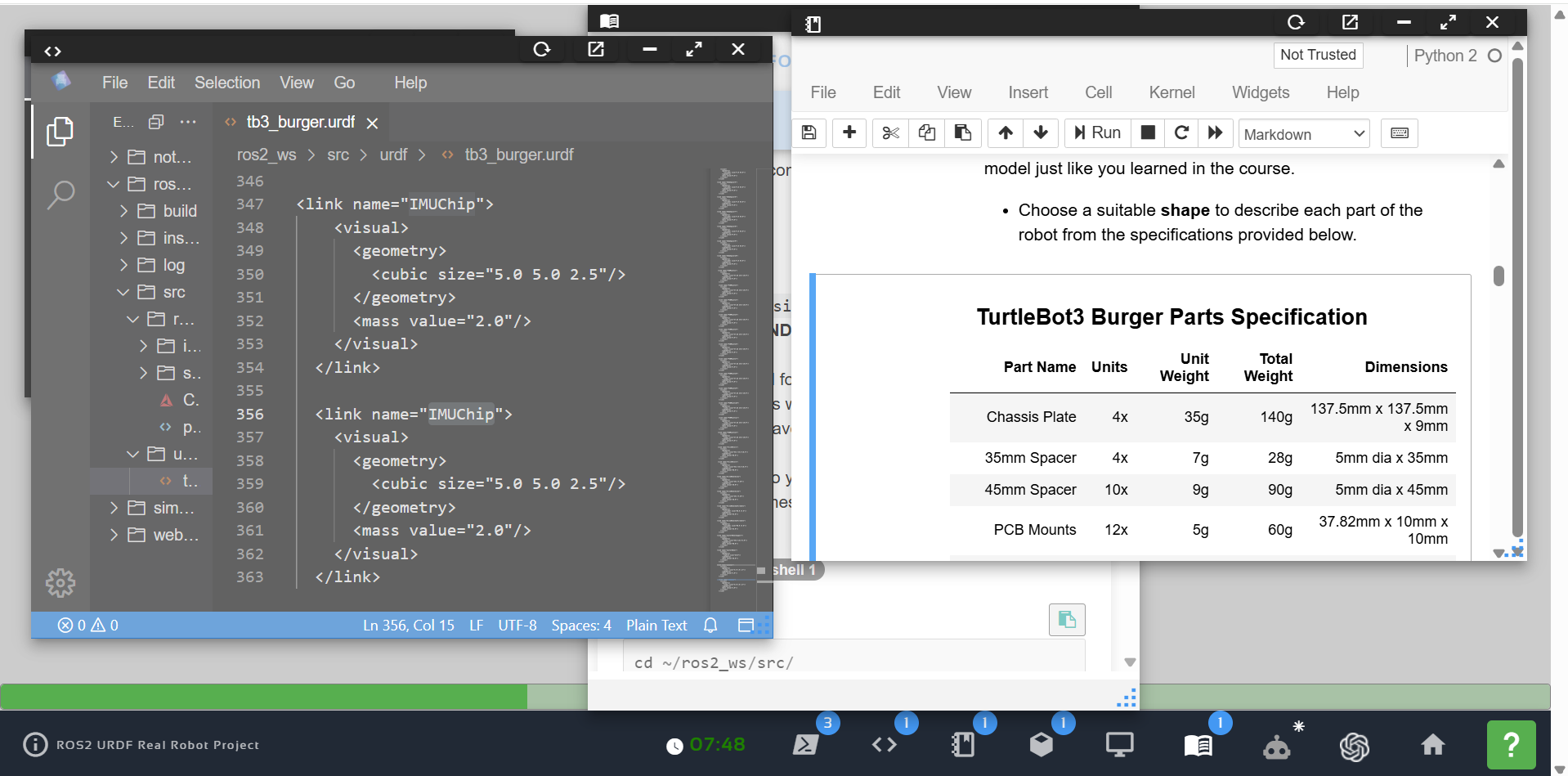 There is no programming here. You will just design the URDF file with the provided part dimensions and masses.
