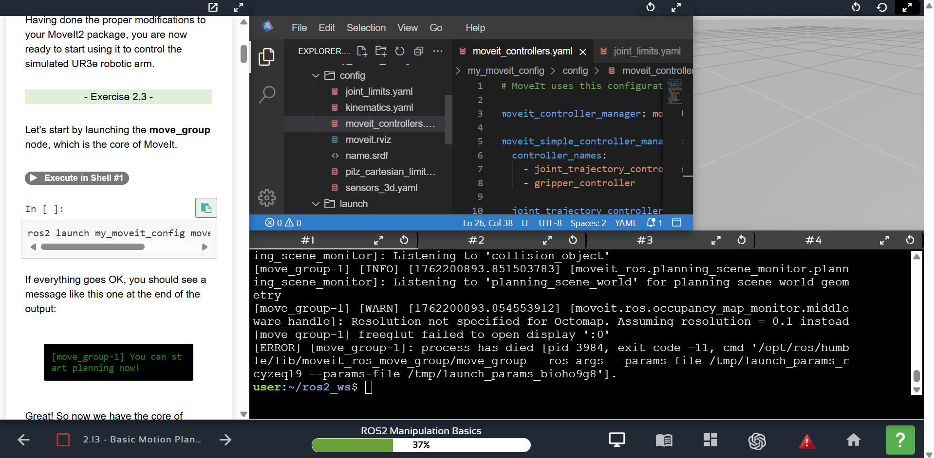 Great! So if it’s still failing with the simulation running, then it means there’s something wrong with your Moveit configuration package. You can send me your package to aezquerro@theconstruct.ai, and I’ll give it a look to see what’s wrong.