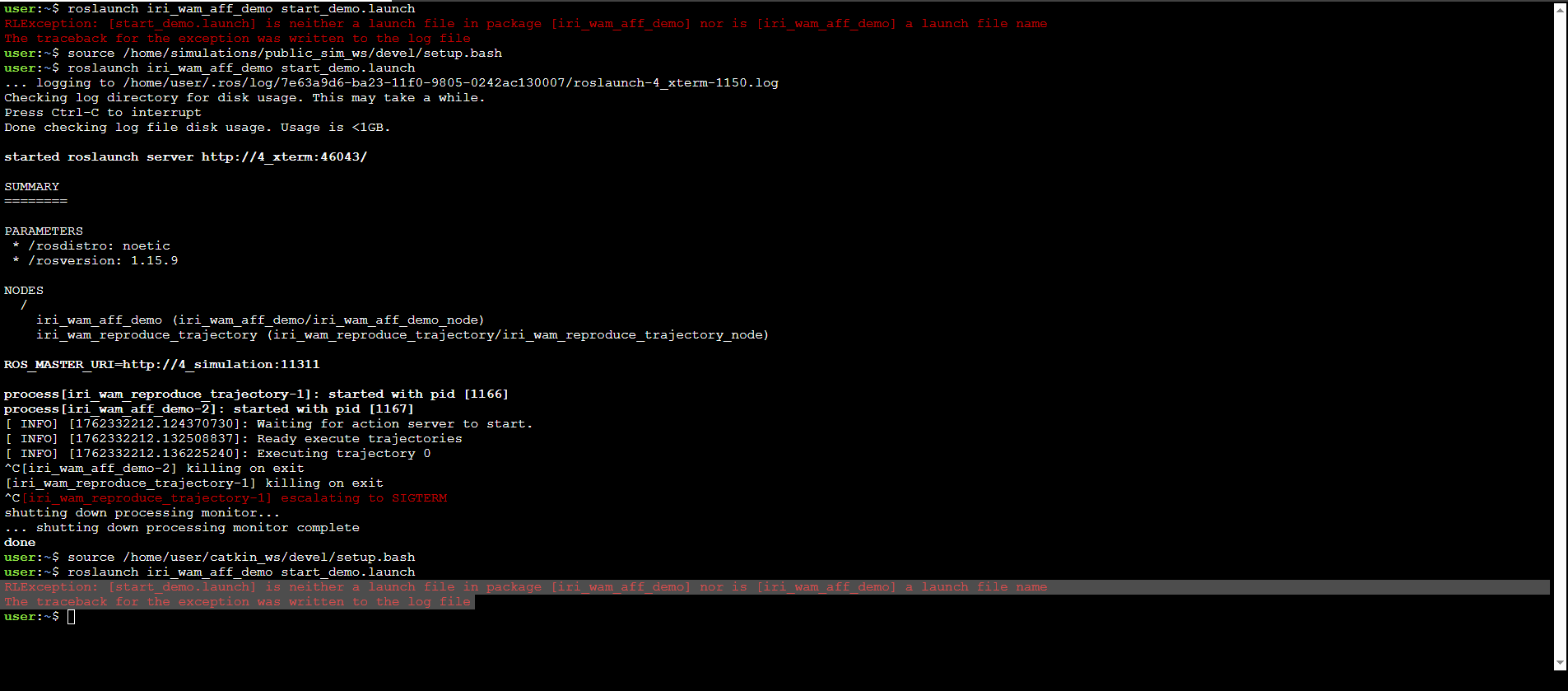 RLException: [start_demo.launch] is neither a launch file in package [iri_wam_aff_demo] nor is [iri_wam_aff_demo] a launch file name The traceback for the exception was written to the log file