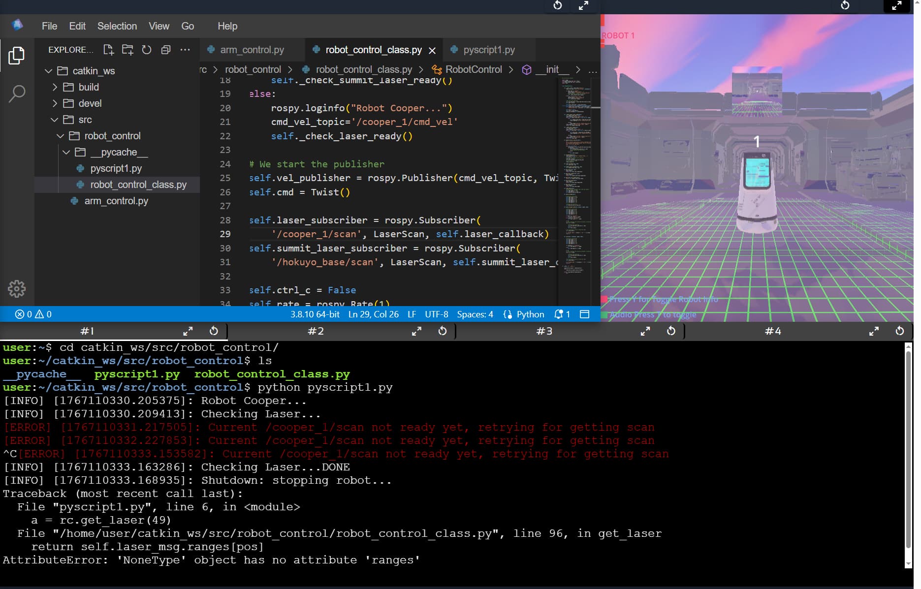 when I start the scripit in the module Python for Robotic and if I follow exactly the tutorial I have this message from whwn I start pyscript1.py from your Dev environnment.