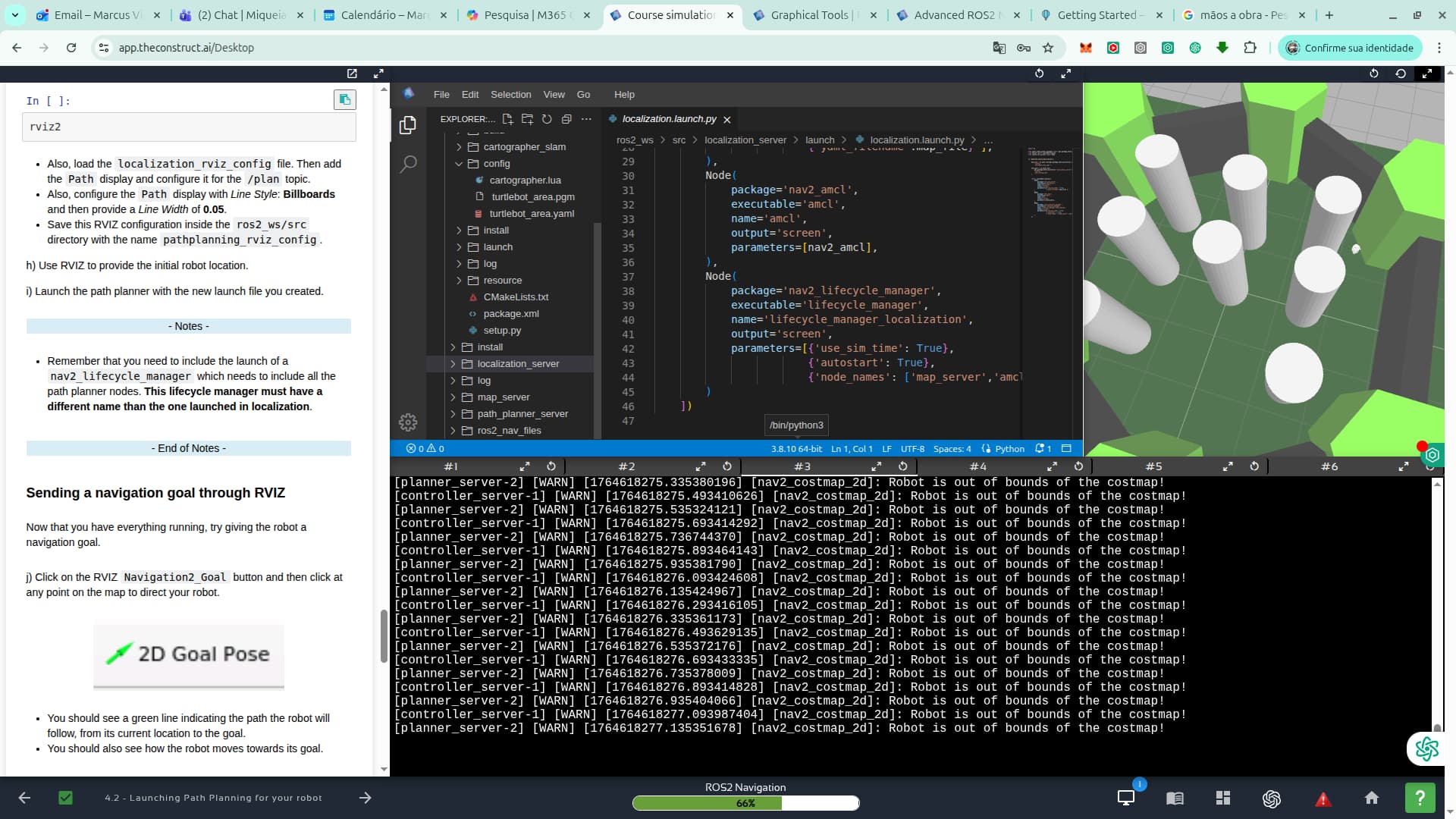 Hi I am having this issue when sending a goal pose on lesson “4.2 Launching Path Planning for your robot”, Some idea of the root of this issue? I believe this is not the cause that the robot is not creating a path. I am also following/reproducing these tutorials, from mapping to control, at my personal laptop (to review my navigation skills) and I am also not being able to create a path at my pc, but due other not trivial issues (unless if launching the “ready to use” complete navigation2 tutorial: https://docs.nav2.org/getting_started/index.html: ros2 launch nav2_bringup tb3_simulation_launch.py headless:=False