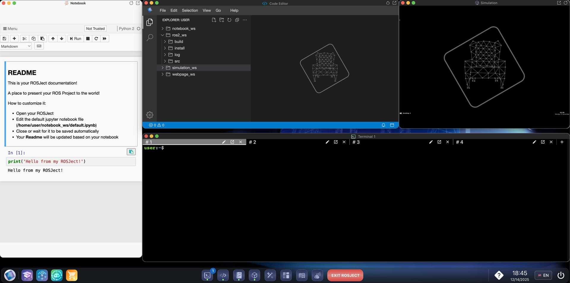 I forked one of many rosjects that I found under the name ROS2 Basics Python Real Robot Project Part 1, and the instructions are very vague: