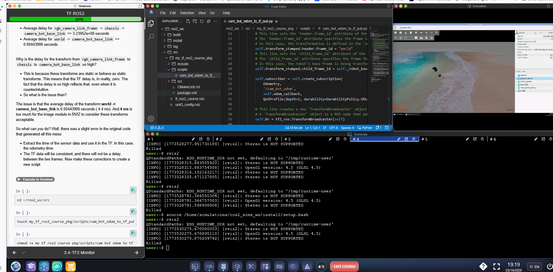 RViz was unexpectedly crashing due to a memory issue. We have optimized the simulation and the meshes, so this problem should now be resolved. Thank you very much for reporting it.